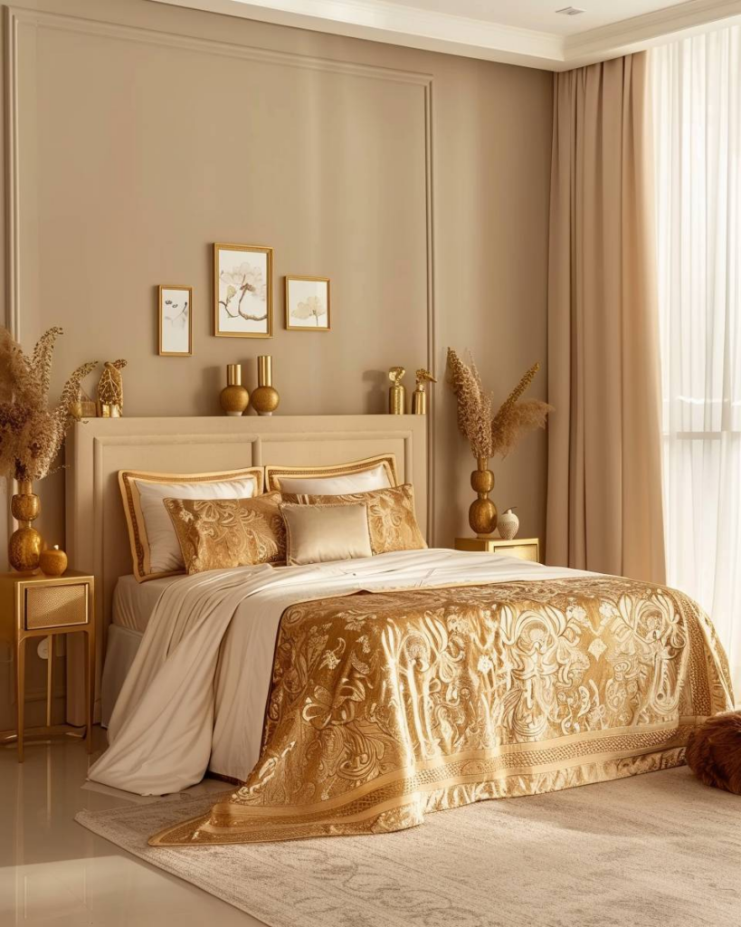 Gold bringt Glanz und Charakter ins Schlafzimmer und wertet jeden Raum sofort auf.