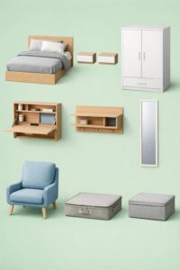 Wähle einfache Möbelstücke für dein Schlafzimmer. Ein minimalistisches Bett, ein schlichter Kleiderschrank und eine einfache Kommode sind ausreichend. Diese reduzierte Ausstattung sorgt für Ruhe und Ordnung. Dein Raum wirkt größer und einladender. Achte darauf, dass die Möbel aus naturbelassenem Holz sind, um Wärme und Gemütlichkeit zu vermitteln.