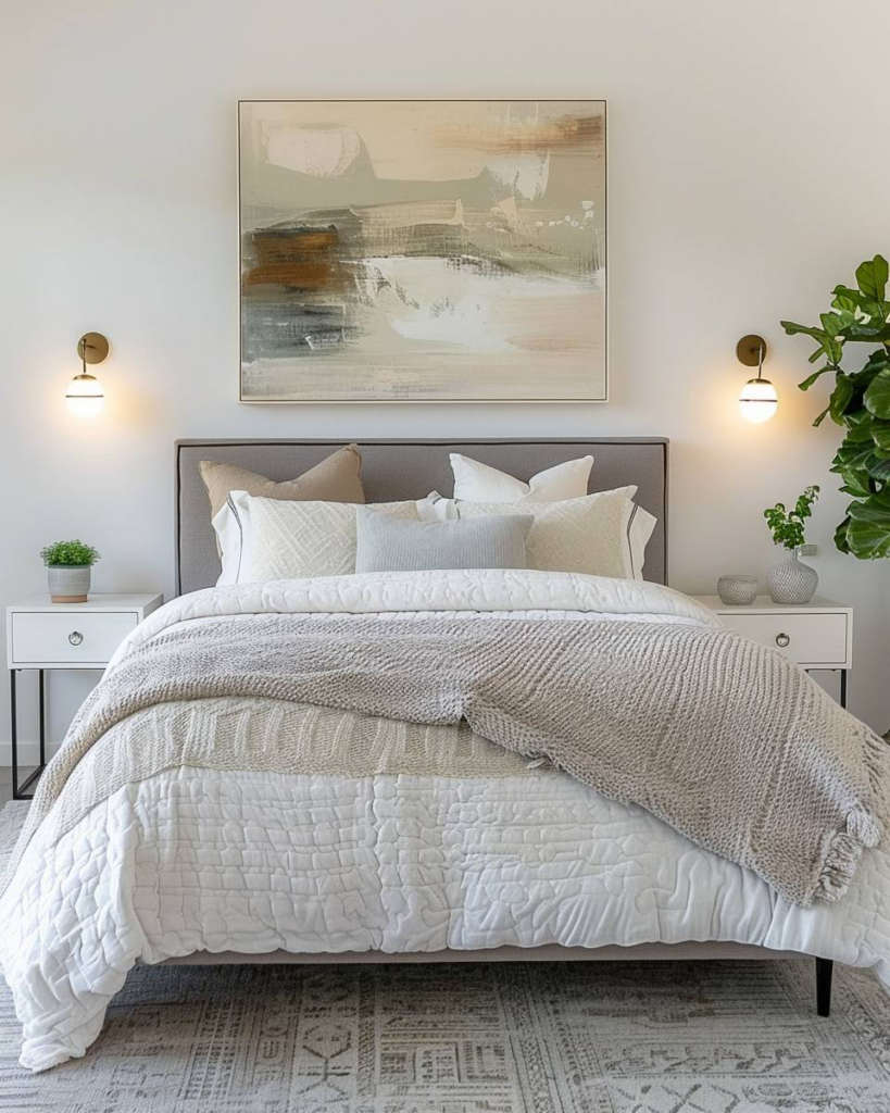 Wände im Schlafzimmer gestalten wir oft als Herausforderung, weil sie schnell leer und kahl wirken können.