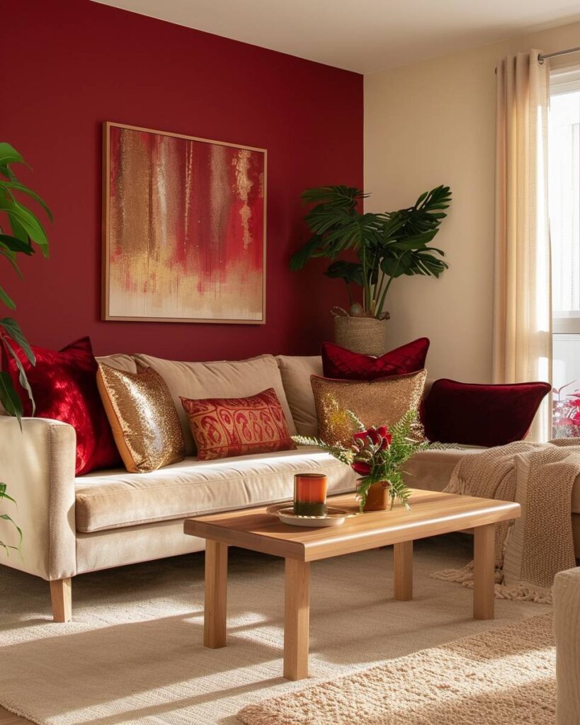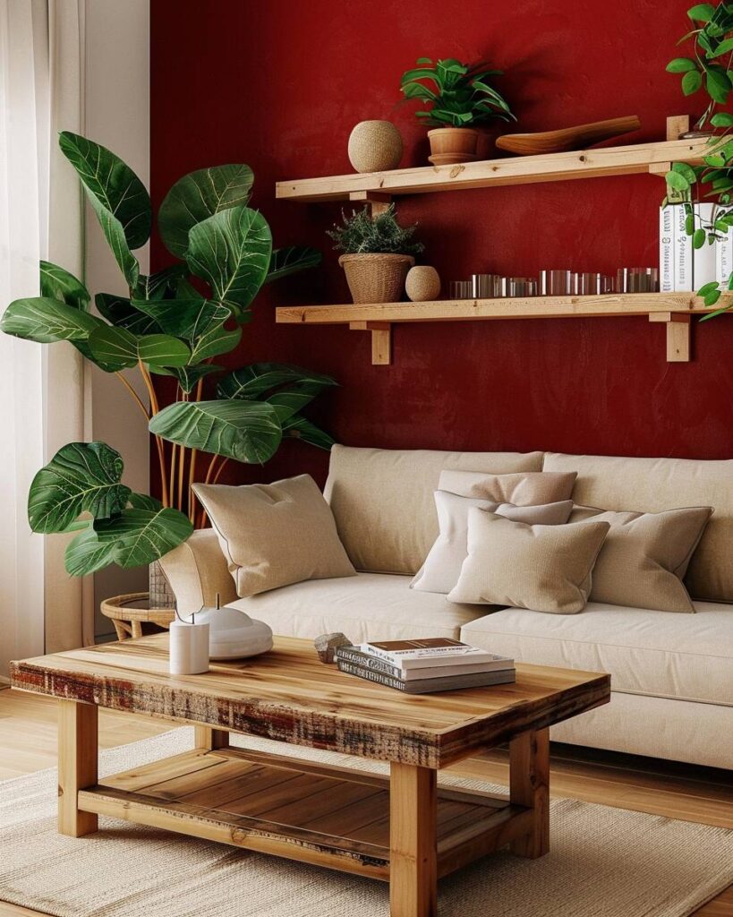 Wenn du mit einem tiefen Rotton gestaltest, rote Akzentwände einrichtest oder die Farbe mit sanftem Beige kombinierst, bekommst du schnell ein stimmiges Raumgefühl.