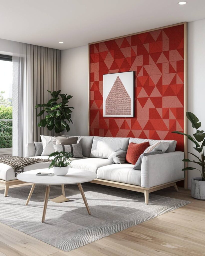 Wähle nur eine Wand für ein kräftiges Rot. Eine Akzentwand bringt sofort Tiefe und wirkt nicht erdrückend. Rot passt gut zu neutralen Farben wie Weiß, Grau oder Beige an den restlichen Wänden. Kombiniere klare Linien bei Möbeln und vermeide zu viele Muster. So bleibt der Fokus auf der roten Fläche.