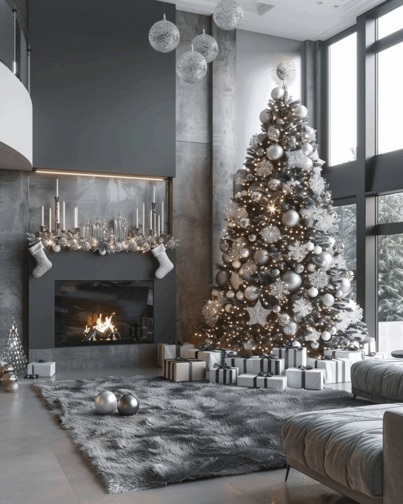 Wähle einen Farbton wie Weiß, Gold oder Silber für Kugeln, Lichter und Bänder. Halte alle Dekoartikel in deiner gewählten Farbe. Nutze matte und glänzende Oberflächen im gleichen Ton für Tiefe. So wirkt der Baum klar, modern und edel.