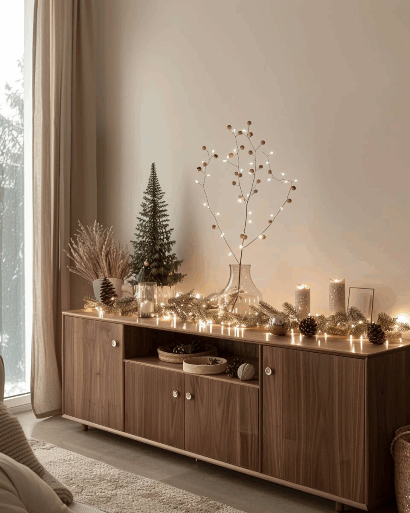 Streue kleine LED-Lichterketten auf Sideboards