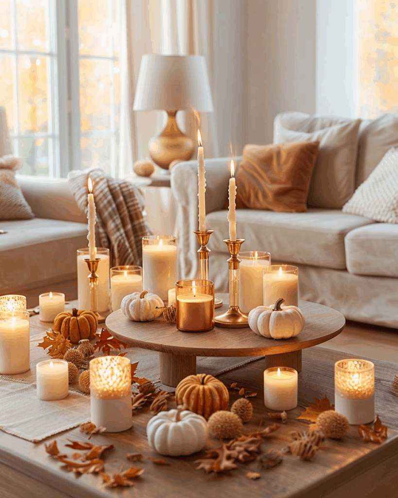 Gestalte eine Kerzenlandschaft auf dem Couchtisch