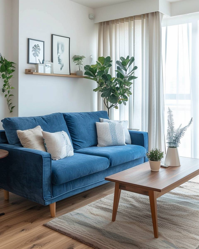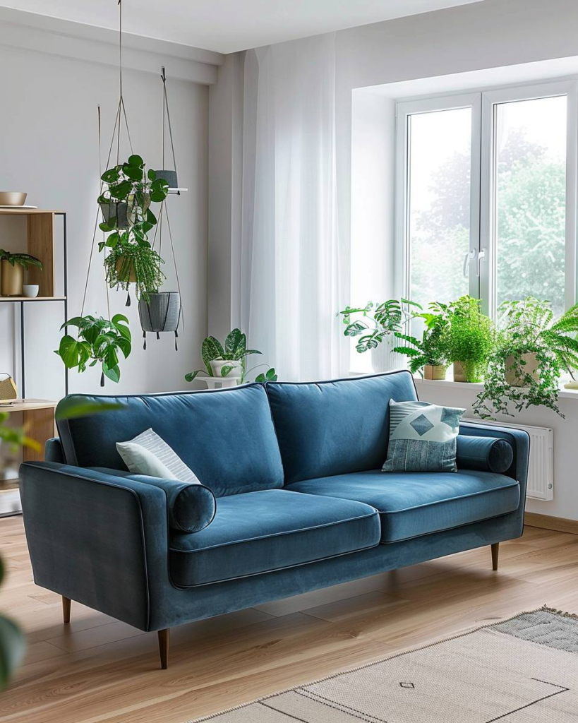 Du willst dein Wohnzimmer mit einem blauen Sofa gestalten und suchst nach neuen Ideen und Inspiration zum Einrichten?