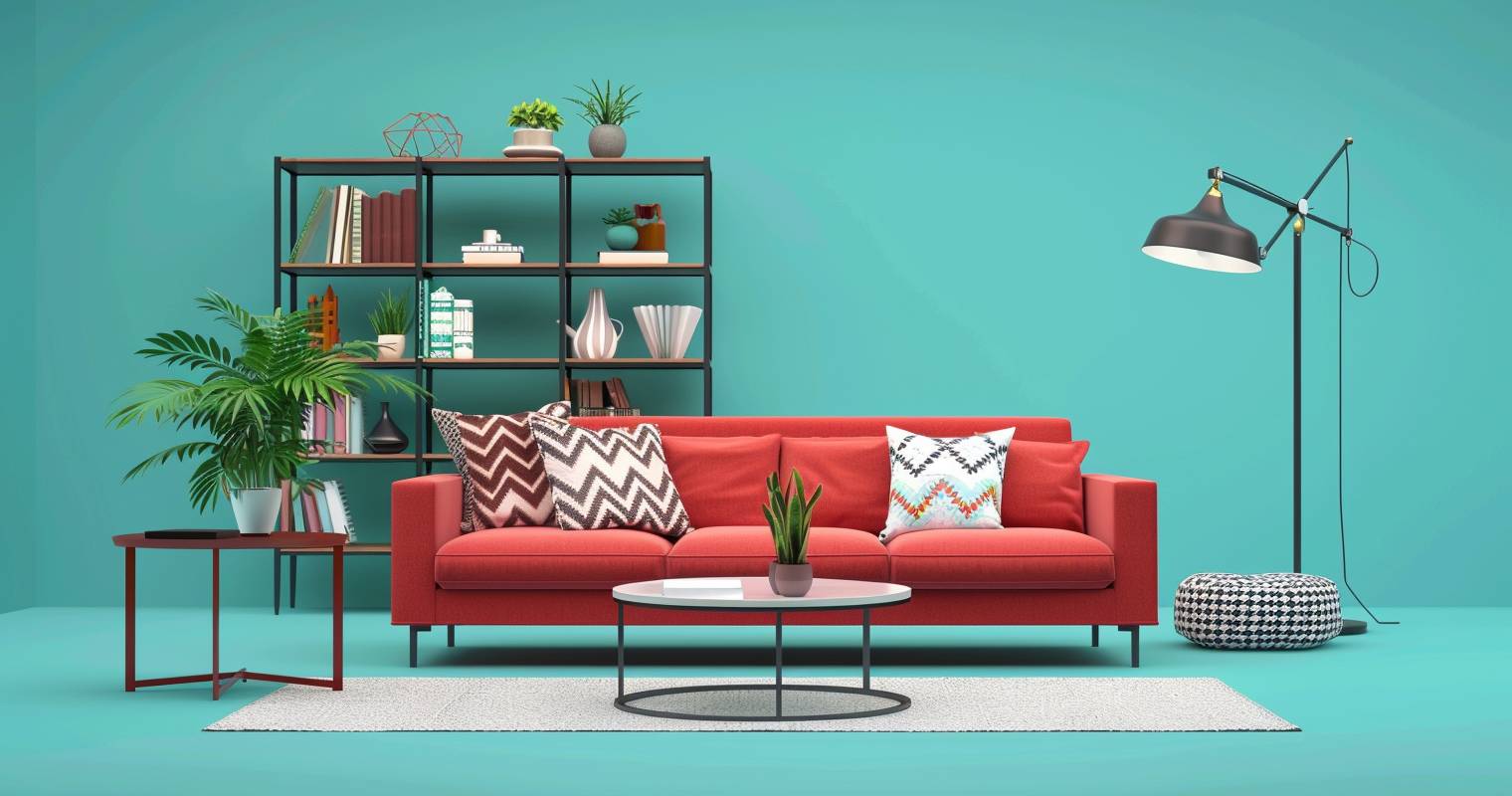 Setze auf schlichte Bücherregale mit klaren Linien. Holz oder Metall in neutralen Tönen lässt dein rotes Sofa im Mittelpunkt stehen. Dezente Regale geben dem Raum mehr Ruhe und lenken nicht ab. Verzichte auf verschnörkelte Details oder bunte Farben.