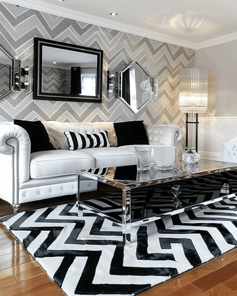 Integriere grafische Teppiche mit Art-Deco-Muster