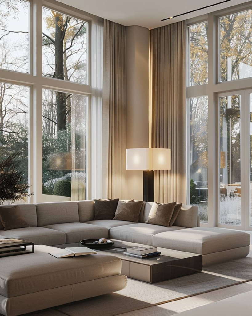 Setze auf dimmbare Lampen, um die Stimmung im Wohnzimmer zu steuern. Mit LED-Spots, Stehlampen oder indirektem Licht können wir jede Ecke der L-Form gezielt beleuchten. Über einen Dimmer passt du die Helligkeit je nach Tageszeit oder Anlass direkt an. Wähle warmweißes Licht, um den Raum gemütlich wirken zu lassen.