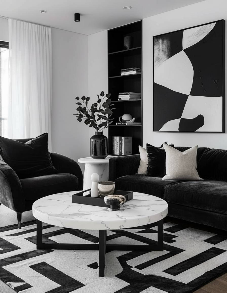 Schwarz-Weiß im Wohnzimmer ist pur und zeitlos, aber oft fehlt dem Raum die Wärme und Lebendigkeit.