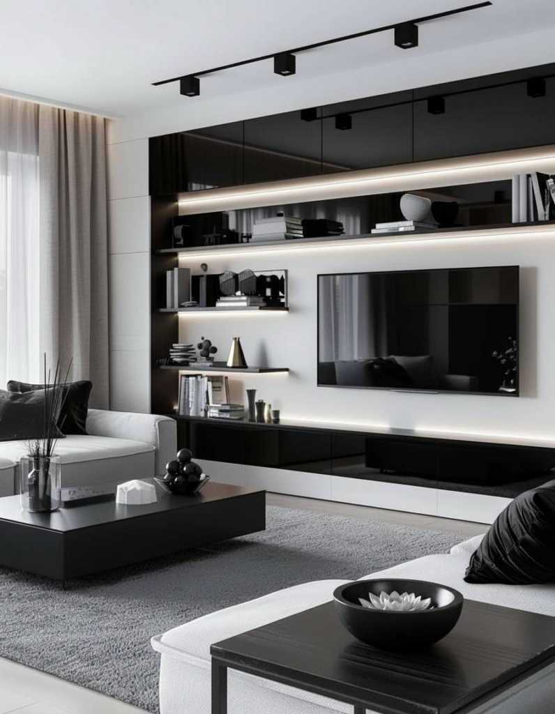 Nutze verschiedene Glanzgrade wie matt, seidenmatt und hochglänzend für Möbel, Böden und Accessoires. Matt bringt Ruhe, Hochglanz reflektiert Licht und setzt starke Akzente. Kombiniere beides, denn so wirkt dein Wohnzimmer in Schwarz-Weiß lebendig und edel.