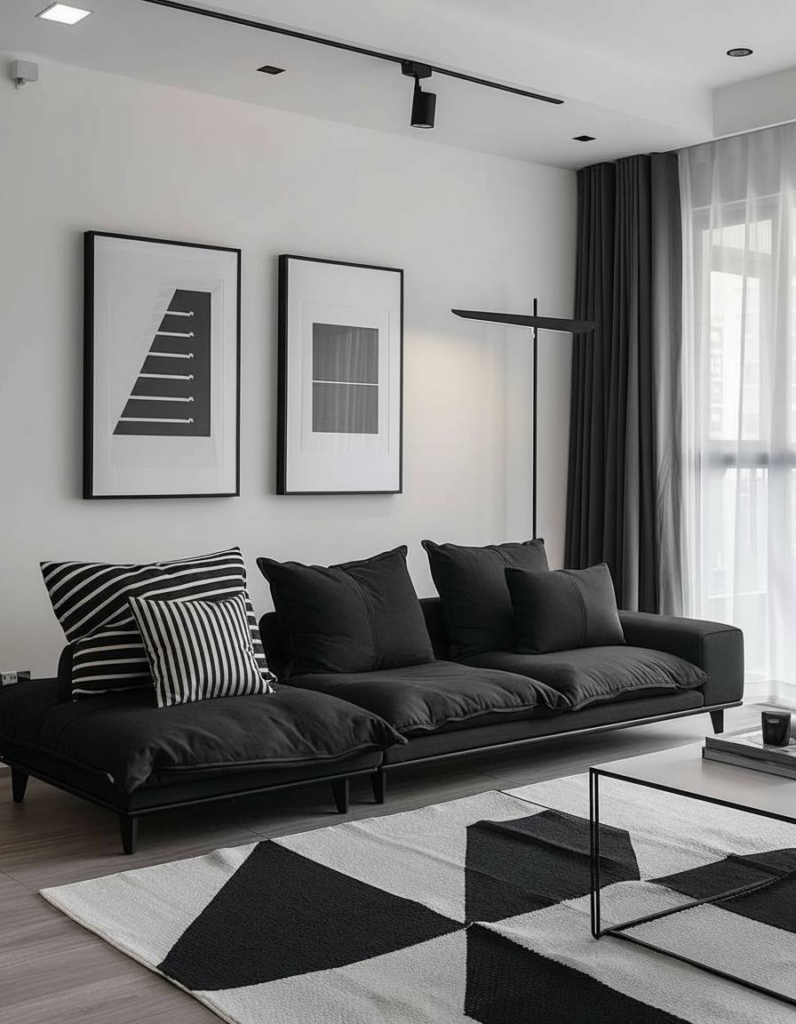 Setze auf Vorhänge in Weiß, Grau oder Schwarz. Sie lassen deinen Raum ruhiger wirken. Kombiniere leichte Baumwolle oder Leinen mit klaren Farben. So bleibst du im schlichten Schwarz-Weiß-Stil. Vermeide Muster oder bunte Stoffe, damit dein Look einheitlich bleibt.