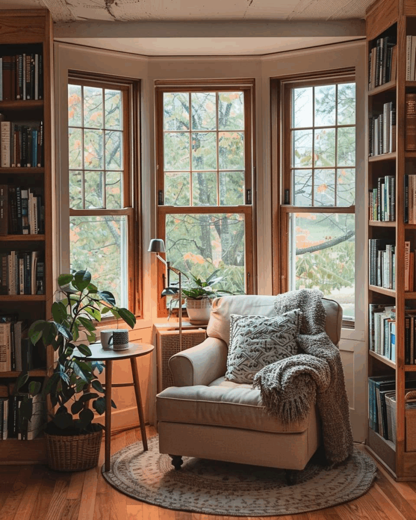 Schaffe eine Leseecke mit Bücherregal