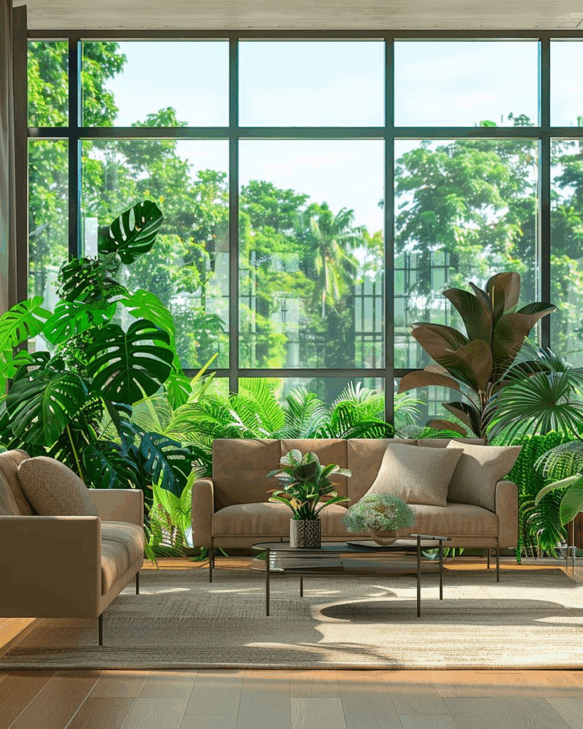 Dekoriere mit großen, lebendigen Zimmerpflanzen