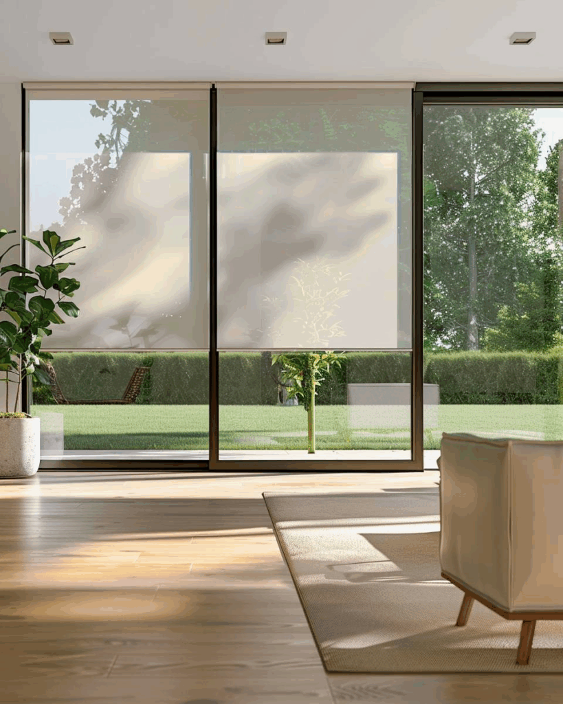 Wähle leichte Plissees oder halbtransparente Rollos für das Panoramafenster im Wohnzimmer. Diese schützen dich vor starker Sonne, lassen Tageslicht durch und erhalten die Aussicht. Wir achten auf neutrale Farben, damit der Raum ruhig bleibt.